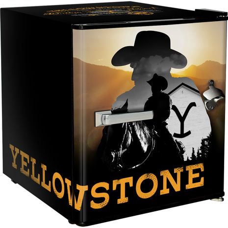 Yellowstone Retro Black Small Vintage Mini Bar Fridge 46 Litre With Opener